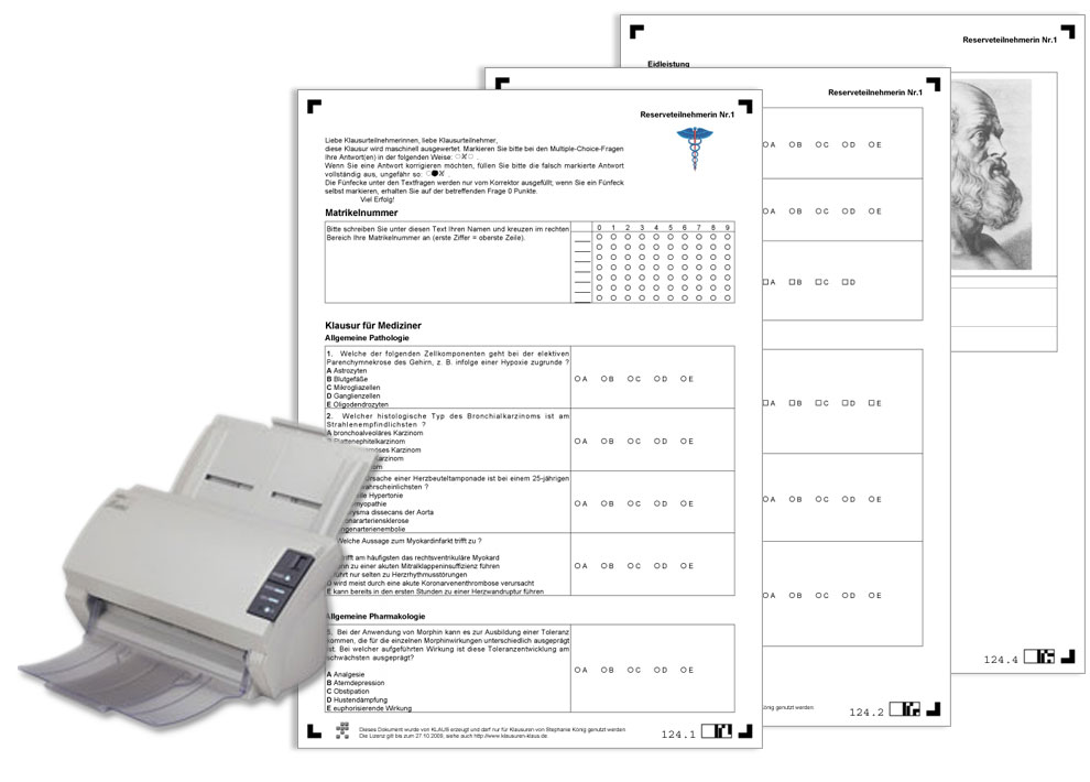 Mit Klaus können Sie Persönliche Bögen erstellen, auf denen der Name des Prüflings bereits aufgedruckt sind; diese Bögen werden beim Erfassen auch dann sicher dem richtigen Prüfling zugeordnet, wenn sie mehrere Seiten umfassen.